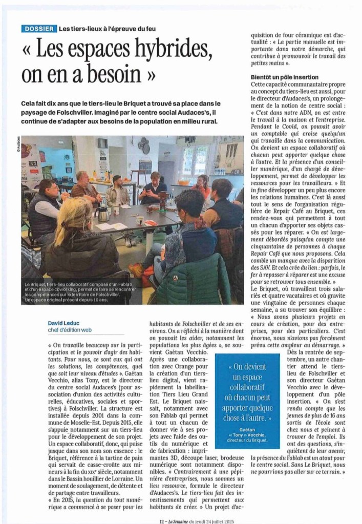 Cela fait maintenant dix ans que le tiers-lieu Le Briquet a trouvé sa place dans le paysage de Folschviller. Imaginé par le centre social Audaces’s, il continue de s’adapter aux besoins de la population en milieu rural.